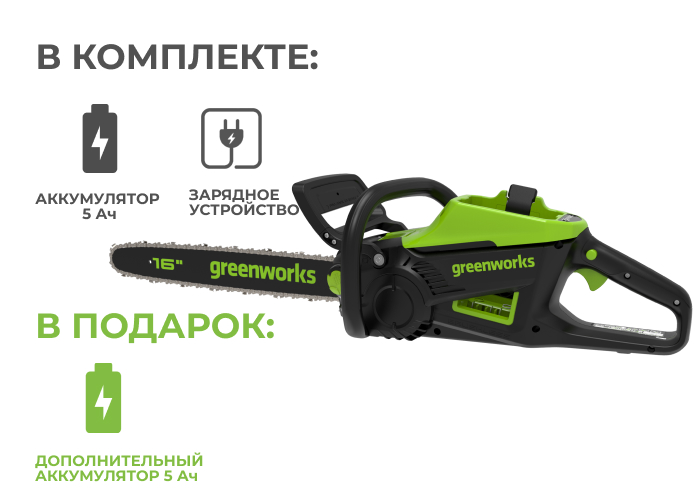 Greenworks 60V GD60CS25 (Арт.2008907UG2) бесщеточная из мощной полупрофессиональной линейки